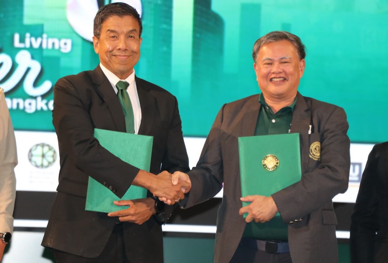 เมื่อวันที่ 18 สิงหาคม 2568 ได้มีพิธีลงนามบันทึกข้อตกลงความร่วมมือ(MOU) ระหว่าง กรุงเทพมหานคร และ มหาวิทยาลัยเกษตรศาสตร์ โดย ดร.ดำรงค์ ศรีพระราม รักษาการแทนอธิการบดี ม.เกษตรศาสตร์ กับ รศ.ดร.ชัชชาติ สิทธิพันธุ์ ผู้ว่าราชการกรุงเทพมหานคร ถือเป็นก้าวสำคัญของความร่วมมือระหว่างภาคการศึกษากับภาครัฐในการผลักดันแนวคิด “เมืองแห่งนวัตกรรม” ที่เน้นการมีส่วนร่วมของเยาวชนคนรุ่นใหม่ ในการเสนอแนวทางการเปลี่ยนแปลงเมืองหลวงให้ตอบสนองต่อความต้องการของประชาชนพร้อมกันนี้ยังได้รับเกียรติจากท่านผู้ว่าฯ บรรยายพิเศษในหัวข้อ “ปัญหาและความท้าทายของกรุงเทพมหานคร: นวัตกรรมยกระดับคุณภาพชีวิต” หลังจากนั้นได้มีพิธีเปิดโครงการ KU Innovation Contest Season 5 ซึ่งจัดขึ้นภายใต้แนวคิด “Living Better Bangkok กรุงเทพที่ดีกว่า...ชีวิตที่ดีขึ้น” โดยมีเป้าหมายในการเปิดพื้นที่ให้นิสิตทุกคณะของมหาวิทยาลัยได้ร่วมกันคิด วิเคราะห์ และพัฒนานวัตกรรมที่ตอบโจทย์ปัญหาเชิงพื้นที่ของกรุงเทพมหานคร ผ่านการเรียนรู้จากประสบการณ์จริง การลงพื้นที่สำรวจปัญหา และการออกแบบแนวทางแก้ไขอย่างสร้างสรรค์และยั่งยืน ซึ่งในปีนี้ดำเนินงานโดยทีมงานของ คณะสังคมศาสตร์ คณะวิศวกรรมศาสตร์ และคณะเทคนิคการสัตวแพทย์ ณ ห้องประชุมสุธรรม อารีกุล อาคารสารนิเทศ 50 ปี ม.เกษตรศาสตร์